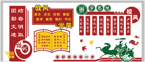 4、學校大廳、走廊、樓梯、教室、辦公室、接待室、會議室等室內文化以及室外墻體、人文景觀、校園雕塑等環(huán)境文化規(guī)劃。