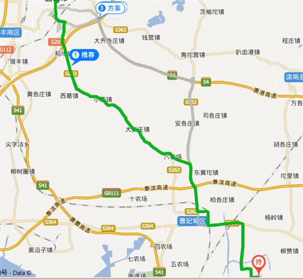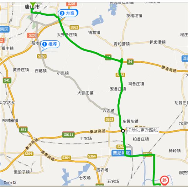 推薦方案:唐山百貨大樓 進(jìn)入建設(shè)南路 朝唐柏路方向,左前方轉(zhuǎn)彎進(jìn)入南湖大道 右轉(zhuǎn)進(jìn)入復(fù)興路 直行進(jìn)入唐海線 朝曹妃甸方向,靠左 直行進(jìn)入S263 左前方轉(zhuǎn)彎進(jìn)入西曾線 右轉(zhuǎn)進(jìn)入遷曹線 左轉(zhuǎn) 行駛4.3公里,左轉(zhuǎn)進(jìn)入S364 靠右 行駛90米,右轉(zhuǎn)進(jìn)入通海路 左轉(zhuǎn)進(jìn)入新城大道 右轉(zhuǎn) 行駛2.8公里,到達(dá)終點(diǎn)