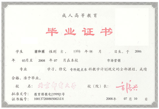 成考畢業(yè)證樣本