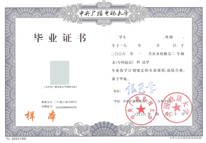 廣播電大證書樣本
