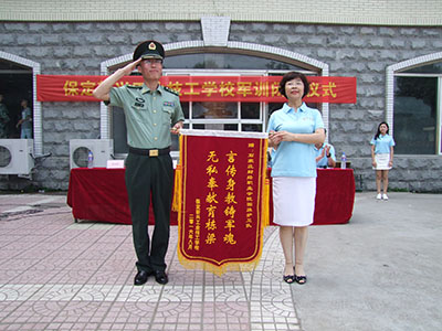 白麗校長在教官的陪同下依次檢閱了各個(gè)受訓(xùn)方陣。接著軍訓(xùn)成果匯報(bào)表演開始,整齊的步伐、劃一的動(dòng)作、昂揚(yáng)的斗志、嘹亮的口號(hào)充分展現(xiàn)了新興學(xué)子規(guī)范的舉止、嚴(yán)明的紀(jì)律和良好的精神風(fēng)貌,展示了同學(xué)們刻苦拼搏的軍訓(xùn)成果。匯報(bào)表演博得了在場領(lǐng)導(dǎo)、教官、教師的陣陣掌聲,贏得了大家的一致好評。隨后校領(lǐng)導(dǎo)們分別向獲得各項(xiàng)榮譽(yù)及優(yōu)秀方隊(duì)與優(yōu)秀個(gè)人頒發(fā)獎(jiǎng)狀。同學(xué)代表發(fā)言,表達(dá)了對教官和老師們得感謝并表示在今后的學(xué)習(xí)生活中謹(jǐn)記教官的教導(dǎo),用頑強(qiáng)的意志克服學(xué)習(xí)道路上的一切困難。田小霞副校長代表學(xué)校為軍訓(xùn)閉營儀式總結(jié)發(fā)言。他感謝了參訓(xùn)教官和班主任的辛勤付出,同時(shí)對同學(xué)們圓滿完成軍訓(xùn)任務(wù)表示祝賀并希望全體同學(xué)以軍訓(xùn)作為起點(diǎn),過一個(gè)有意義的技校生活。白麗校長并向培訓(xùn)基地贈(zèng)送錦旗。