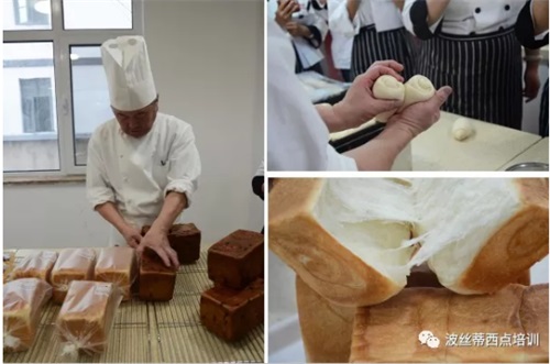 學(xué)習(xí)過(guò)程中,森下老師對(duì)同學(xué)們的面團(tuán)揉圓手法和面包烘烤出爐過(guò)程進(jìn)行了指導(dǎo),森下老師告訴同學(xué)們,在完成一個(gè)成功的面包時(shí),最重要的就是面團(tuán)揉圓過(guò)程。 在森下老師的耐心指導(dǎo)下,同學(xué)們成功的做出了各種法吐司和柔軟吐司面包。面包組織細(xì)膩,口感松軟,具有彈性。