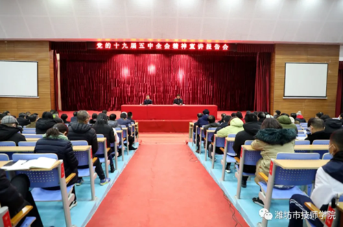 1、掀起學(xué)習(xí)宣傳貫徹黨的十九屆五中全會(huì)精神熱潮。為深入學(xué)習(xí)宣傳貫徹黨的十九屆五中全會(huì)精神,濰坊技師學(xué)院專(zhuān)門(mén)研究制定了《中共濰坊市技師學(xué)院委員會(huì)黨的十九屆五中全會(huì)精神宣講工作實(shí)施方案》。邀請(qǐng)市委常委、秘書(shū)長(zhǎng)李蘭祥到校做黨的十九屆五中全會(huì)精神主題形勢(shì)政策報(bào)告,將黨的十九屆五中全會(huì)精神學(xué)習(xí)納入黨委理論學(xué)習(xí)中心組集體學(xué)習(xí)研討內(nèi)容,黨委書(shū)記、院長(zhǎng)及班子成員,各黨支部書(shū)記、思政課教師等分層次、分批次對(duì)全會(huì)精神進(jìn)行宣講,做到全院師生全覆蓋,掀起學(xué)習(xí)宣傳貫徹黨的十九屆五中全會(huì)精神熱潮。
