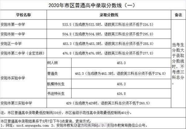 2021年河南省安陽市中考錄取分?jǐn)?shù)線暫未公布,小編為大家整理了2020年分?jǐn)?shù)線作為參考。2021年分?jǐn)?shù)線將在官方公布后進(jìn)行更新,請大家持續(xù)關(guān)注。 2020年