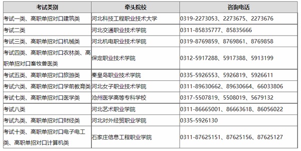 附:高職單招各類牽頭院校咨詢電話