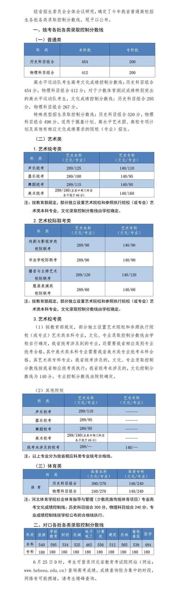 2021年河北省普通高校招生各批各類錄取控制分數(shù)線出爐!